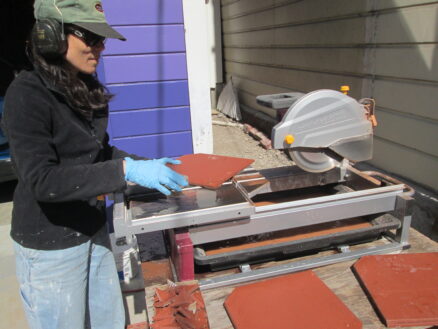 Mole got back into her tile-cutting and helped to cut the tile while I was laying it out.