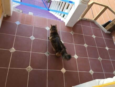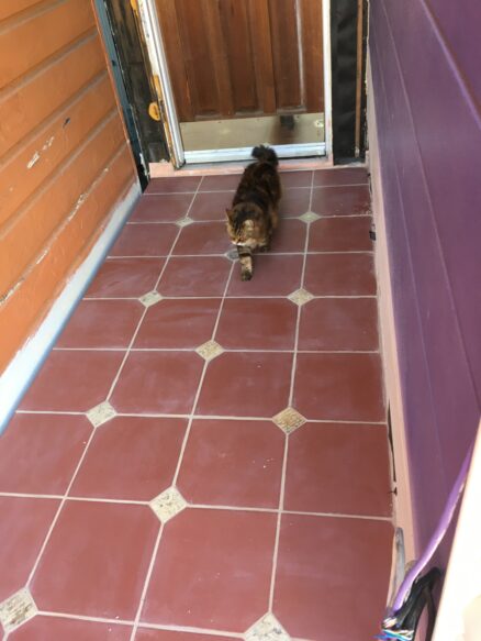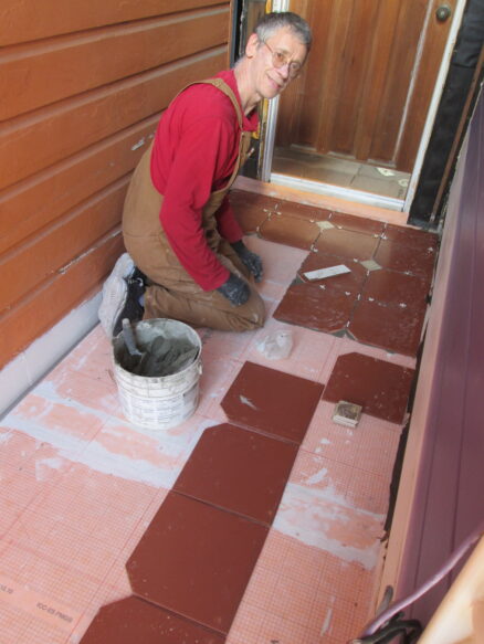 I remember well the day we tore apart the old landing – ripping up work I’ve already done and finished feels so futile. Well, we finally got the tile back on.