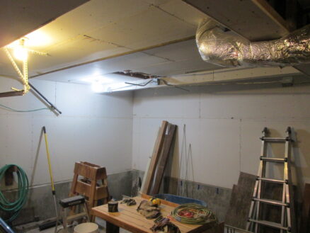 Emilio had some time available, so he helped me install all the drywall on the ceiling and walls. We used a drywall lift to get it on the ceiling — absolutely a great tool!